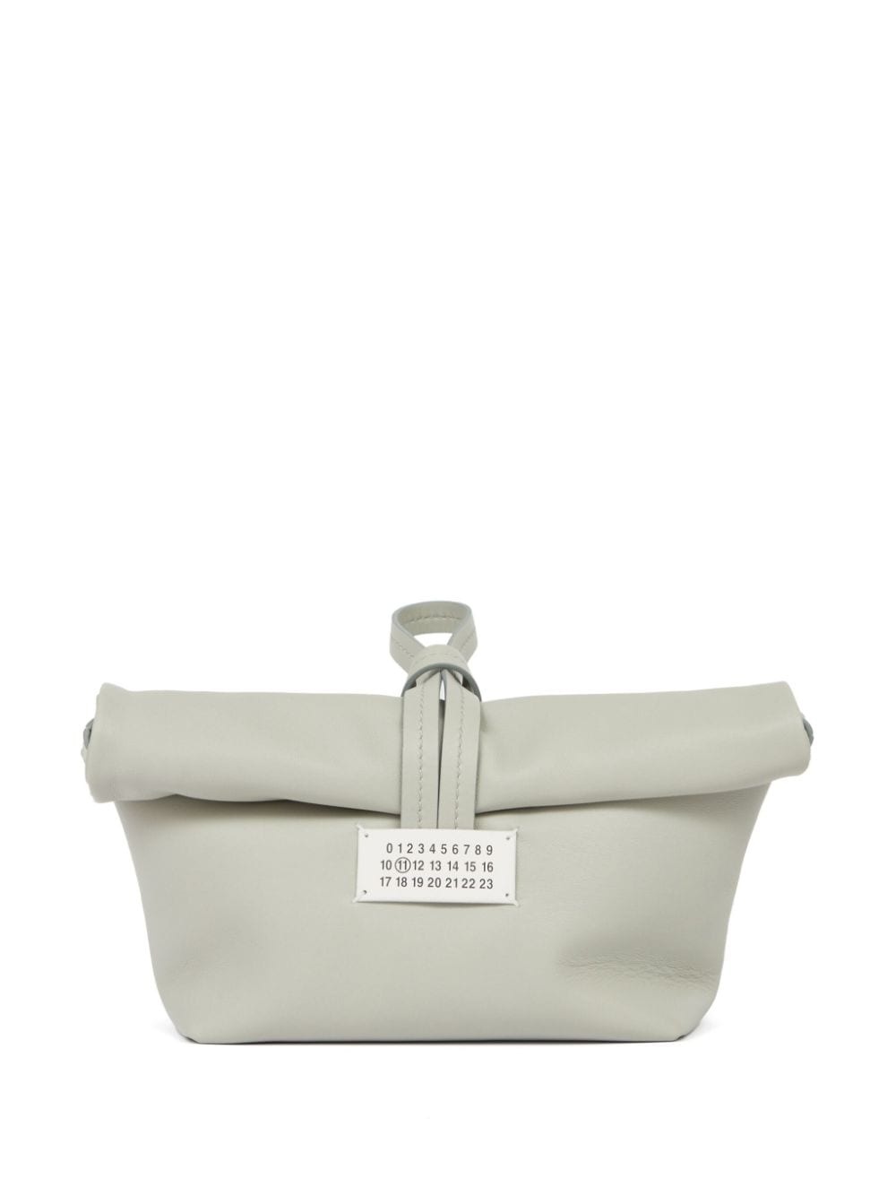 Paper leather clutch bag Highlights - Light grey - Calf leather - Smooth grain - Logo patch to the front - Signature numbers motif - Foldover top - Single top handle - Internal logo stamp - Internal slip pocket - Contrast lining Made in Italy Composition Outer: Calf Leather 100%, Ovine Leather (top grain) 100% SIZE & FIT Measurement DEPTH 3.34 in(8.5 cm) HANDLE 2.75 in(7 cm) HEIGHT 7.08 in(18 cm) WIDTH 11.81 in(30 cm)