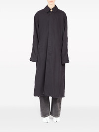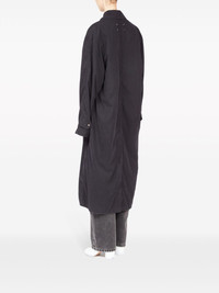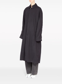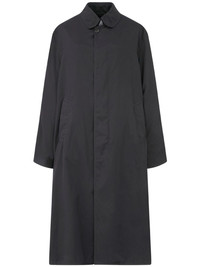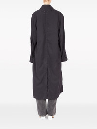 peached-cotton trench coat This black Maison Margiela trench coat is rooted in the idea of ‘the rejection of conventional bourgeois dressing.’ It’s cut from brushed cotton twill with belted cuffs to temper the louche sleeves and a signature four-stitch logo at the nape – the opposite of a label. Highlights - Black - Cotton - Twill weave - Signature four-stitch logo - Brushed finish - Concealed front button fastening - Classic collar - Drop shoulder - Long sleeves - Belted cuffs - Two side welt pockets - Central rear vent - Mid-length Made in Italy Composition Polyester 87%, Polyamide 13% SIZE & FIT FittingInformation Made from a midweight non-stretch fabric