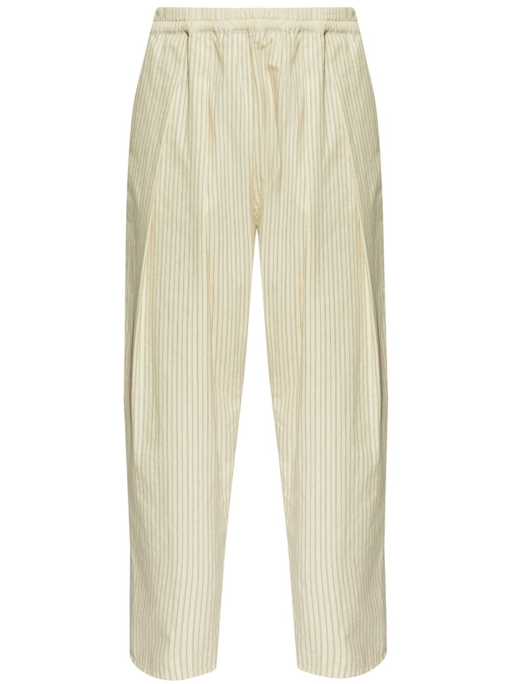 pinstripe trousers Highlights - Light beige - Elasticated waistband - Two side slit pockets - Rear patch pocket - Pleat detailing Made in Italy Composition Cotton 80%, Polyester 20%