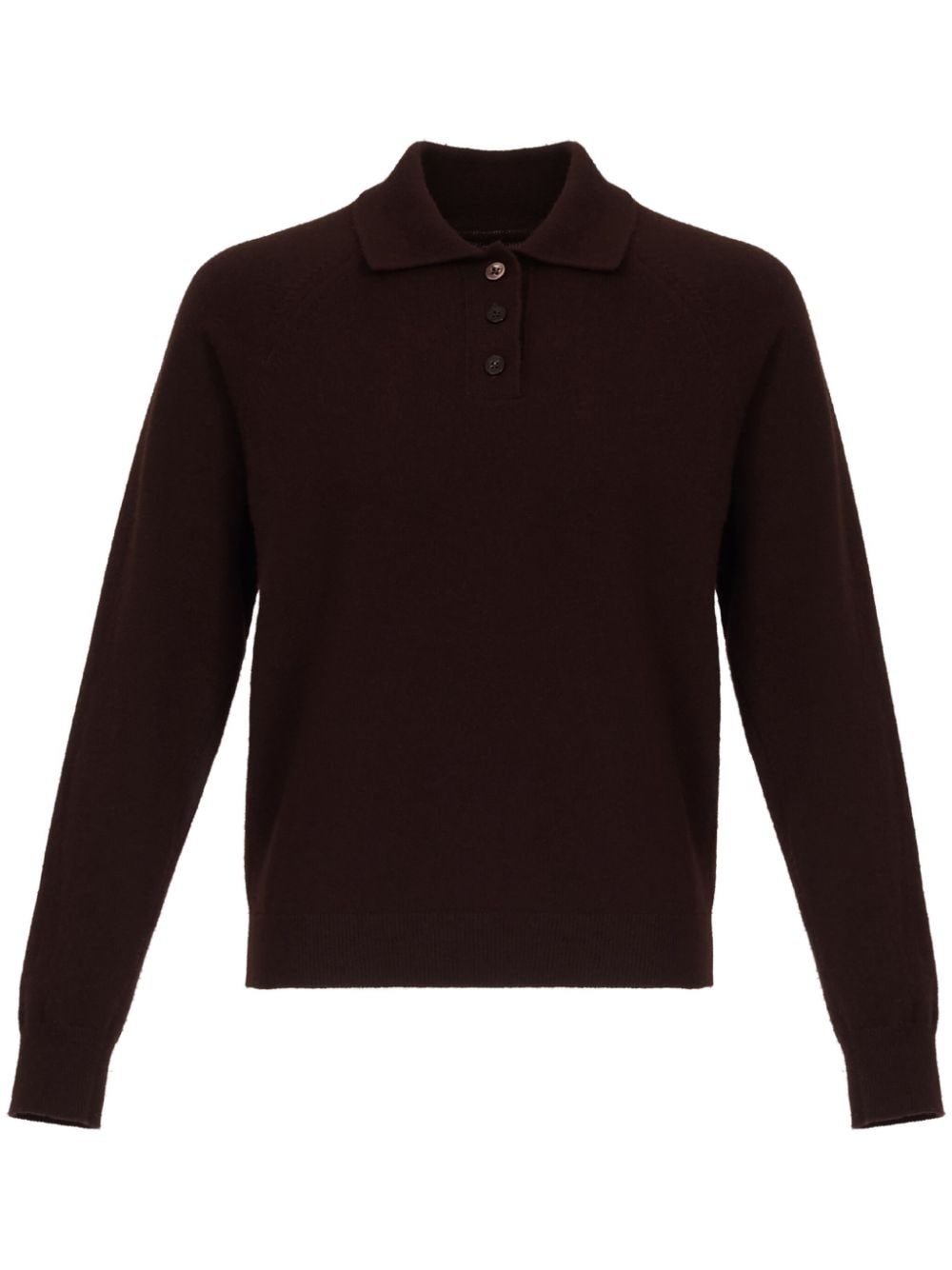 polo collar ribbed knit top Highlights - Brown - Virgin wool - Ribbed knit - Short front button fastening - Polo collar - Long sleeves - Ribbed cuffs and hem - Signature four-stitch logo to the rear Made in Italy Composition Virgin Wool 100% SIZE & FIT Measurement SLEEVE LENGTH 22.99 in(58.4 cm) LENGTH 19.48 in(49.5 cm) WAIST 35.98 in(91.4 cm) BUST 37.99 in(96.5 cm)