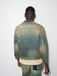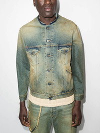 raw-cut collar denim jacket Maison Margiela offers a fresh take on a classic silhouette, the denim jacket. The French label updates this timeless design with a raw-cut neck and a distressed effect. Made in Italy Composition Cotton 100% Washing instructions Hand Wash
