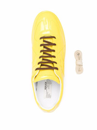 Replica high-shine sneakers Maison Margiela's signature Replica trainers are inspired by sports shoes from the 70s, and reinvented every season with new designs. The iconic pair appears here for SS22 in a glossy yellow shade, finished with the label's signature single stitch logo on the back for a recognisable appeal. Made in Italy Composition Sole: Rubber 100% Outer: Calf Leather 100%, Lamb Skin 100%, Fabric 100% Lining: Fabric 100%, Calf Leather 100% SIZE & FIT Measurement HEEL 1.1 in(2.8 cm) Sole height 0.59 in(1.5 cm)