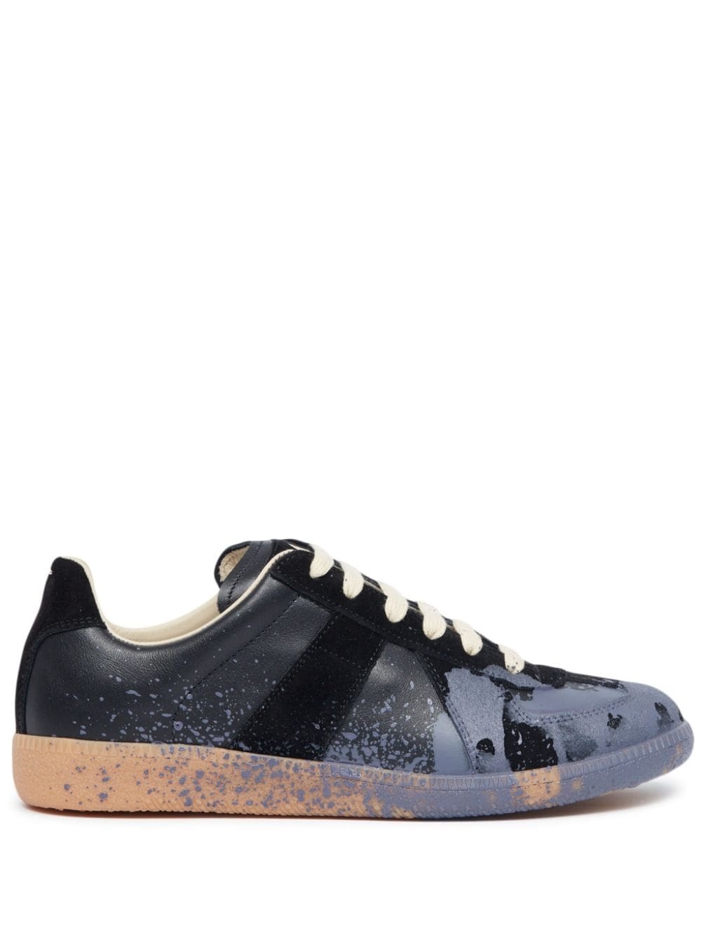 Replica Paint leather sneakers Highlights - Black/powder blue - Calf leather - Cotton lining - Panelled design - Painterly print - Signature single-stitch logo - Round toe - Front lace-up fastening - Branded insole - Flat rubber sole Made in Italy Composition Leather 100% SIZE & FIT Measurement HEEL 0.78 in(2 cm) Sole height 0.39 in(1 cm)