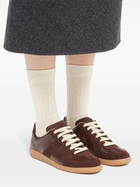 Replica sneakers Highlights - Chocolate brown - Calf leather - Suede panelling - Signature single-stitch logo - Signature numbers motif - Round toe - Front lace-up fastening - Branded insole - Flat rubber sole Made in Italy Composition Leather 100%
