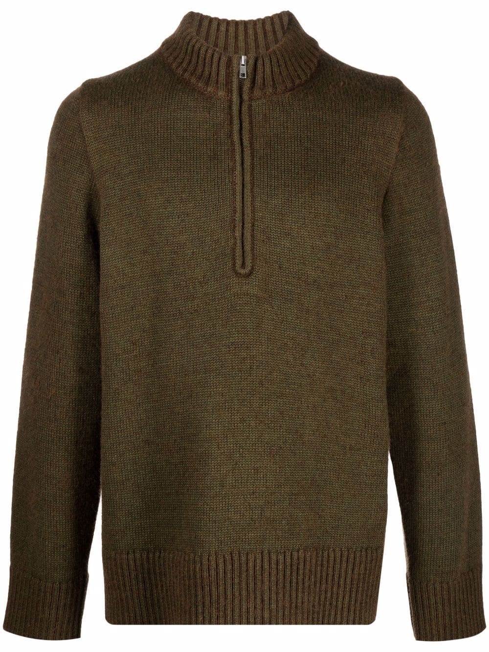 ribbed detail jumper green wool blend high neck front zip fastening long sleeves ribbed hem Imported Composition Acrylic 35%, Wool 26%, Mohair 20%, Viscose 10%, Polyamide 9% SIZE & FIT Model measurements Height 6 ft 2 in(1.89 m) Bust/Chest 35.43 in(90 cm) Hips 36.61 in(93 cm) Waist 28.74 in(73 cm) FittingInformation This piece fits true to size. We recommend you get your regular size Cut for a loose fit Made with a mid-weight fabric Washing instructions Dry Clean Only