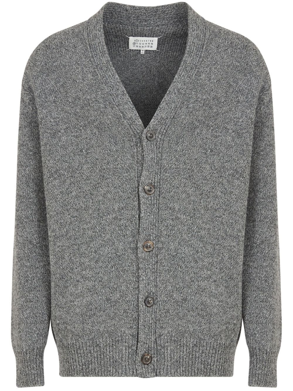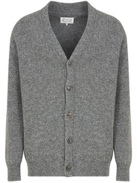 ribbed-edge wool cardigan Highlights - Grey - Wool - Knitted construction - Ribbed v-neck - Front button fastening - Drop shoulder - Long sleeves - Ribbed cuffs and hem - Straight hem Made in Italy Composition Wool 100% Washing instructions Read Manufacturer Guidelines
