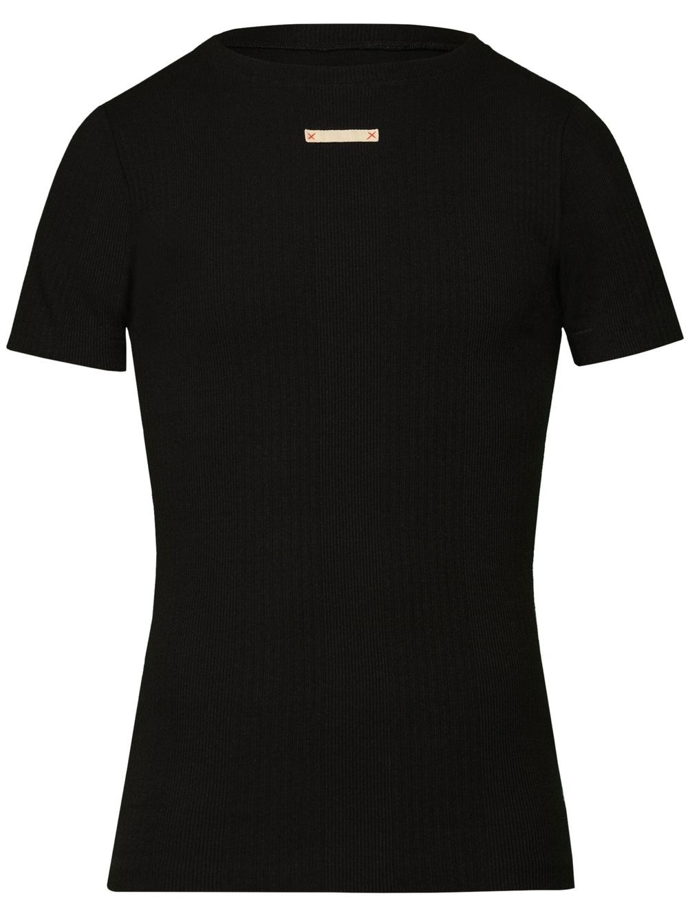 Fancy ribbed-knit T-shirt Highlights - Ribbed-knit cotton t-shirt from maison margiela featuring black, cotton, ribbed knit, logo patch to the front, crew neck, short sleeves and straight hem. Made in Italy Composition Cotton 100%