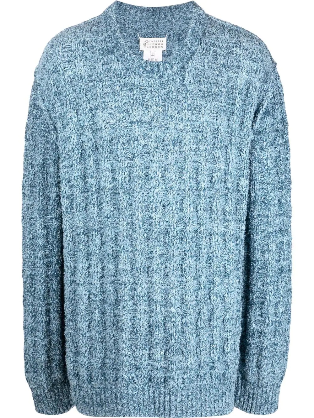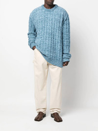 ribbed-knit crew-neck jumper Highlights - Alice blue - Cotton blend - Knitted construction - Ribbed knit - Crew neck - Drop shoulder - Long sleeves - Ribbed-knit edge - Long length - Straight hem - When buying this unisex item, keep in mind that it is graded in standard men's sizing. Imported Composition Cotton 65%, Polyamide 23%, Viscose 12% SIZE & FIT Model measurements Height 5 ft 9 in(1.74 m) Bust/Chest 32.28 in(82 cm) Hips 35.82 in(91 cm) Waist 24.01 in(61 cm) Measurement SLEEVE LENGTH 27.16 in(69 cm) LENGTH 25.19 in(64 cm) Shoulder Width 19.68 in(50 cm) FittingInformation This piece fits true to size. We recommend you get your regular size Cut for a loose fit Made with a heavyweight fabric Washing instructions Dry Clean Only
