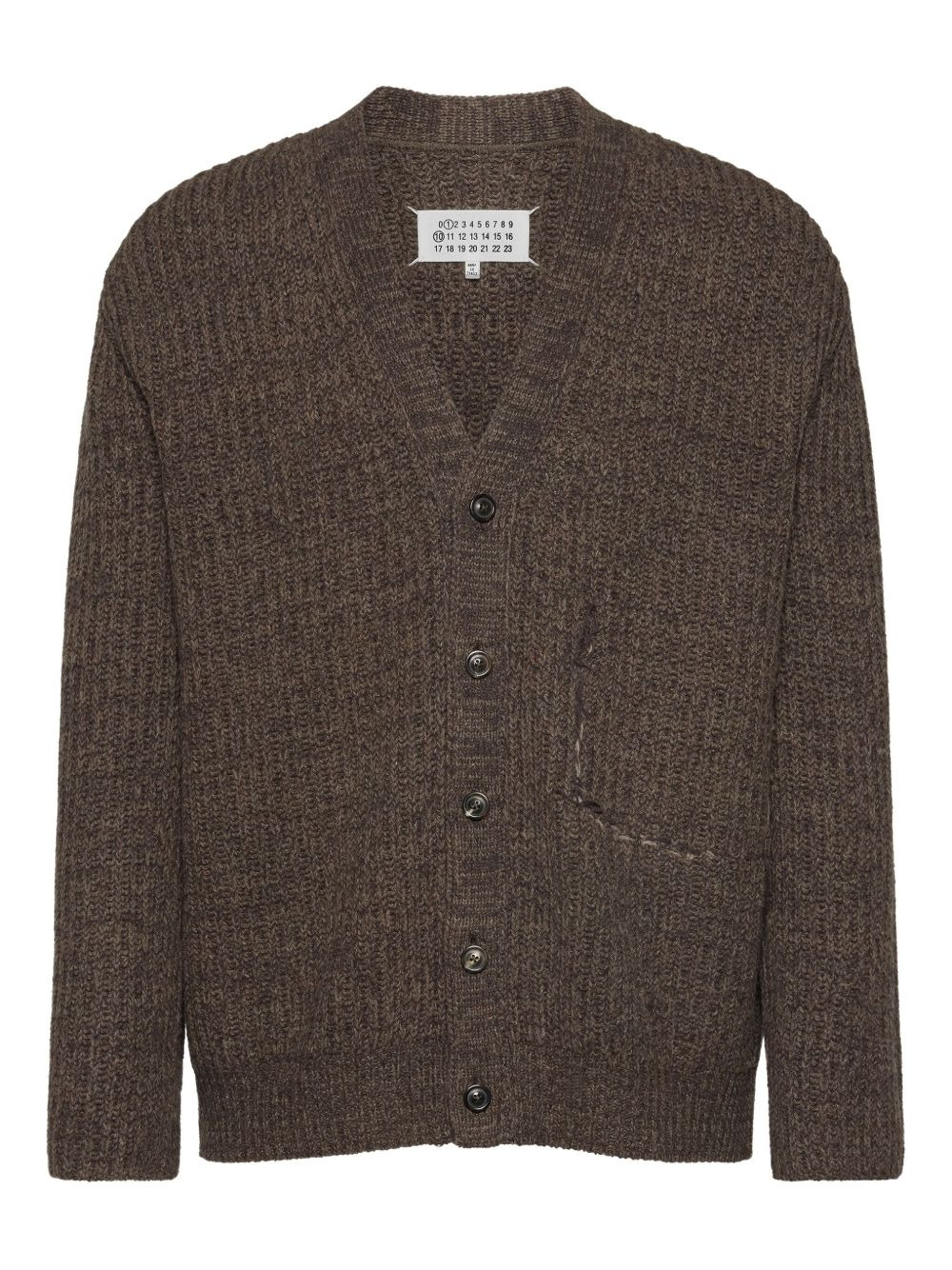 ribbed wool cardigan Highlights - Dark brown - Ribbed knit - V-neck - Button fastening - Contrast stitching Made in Italy Composition Virgin Wool 51%, Cotton 47%, other fibers 2% Washing instructions Read Manufacturer Guidelines
