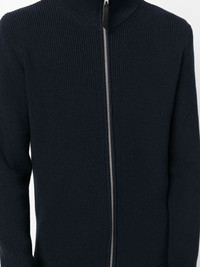 ribbed zip-up cardigan Highlights - Navy blue - Cotton-wool blend - Ribbed knit - Front two-way zip fastening - High neck - Long sleeves Made in Italy Composition Calf Leather 100%, Cotton 60%, Wool 40% SIZE & FIT Model measurements Height 5 ft 11 in(1.8 m) Bust/Chest 31.49 in(80 cm) Hips 35.82 in(91 cm) Waist 24.8 in(63 cm) Measurement CHEST 37.79 in(96 cm) SLEEVE LENGTH 25.39 in(64.5 cm) LENGTH 25.98 in(66 cm) FittingInformation Designed to be unstructured, offering a loose fit throughout Made with a midweight knit, this piece offers some stretch This piece fits true to size – take your usual size