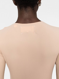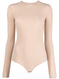 round-neck jersey bodysuit Maison Margiela flaunts their aptitude for creating lasting wardrobe staples when presenting this long-sleeved body. Designed in an effortless tonal shade, the piece is subtly branded in the form of the brand's signature four-stitch logo embroidered at the nape of the neck. Highlights - Long-sleeved stretch-design body from maison margiela featuring beige, signature four-stitch logo, stretch-design, crew neck, long sleeves and press-stud fastening. just a reminder that this piece must be tried on over your own garments.. Made in Italy Composition Polyamide 73%, Spandex/Elastane 27% SIZE & FIT Model measurements Height 5 ft 10 in(1.77 m) Bust/Chest 32.28 in(82 cm) Hips 35.03 in(89 cm) Waist 25.19 in(64 cm) Measurement BUST 31.49 in(80 cm)