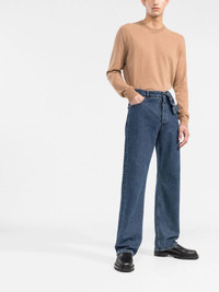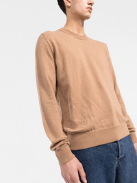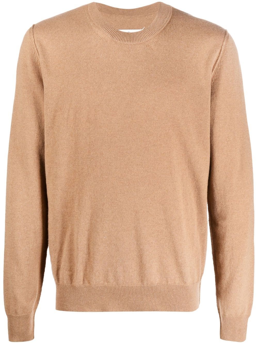 crew-neck cashmere jumper Maison Margiela minimalist aesthetic is captured on this knitwear design. Spun from 100% cashmere, this round neck jumper features a tonal design that encapsulates the house's signature pared-back look. Highlights - Round neck jumper from maison margiela featuring camel brown, cashmere, signature four-stitch logo, round neck and long sleeves. Made in Italy Composition Cashmere 100% SIZE & FIT Model measurements Height 6 ft 2 in(1.89 m) Bust/Chest 37 in(94 cm) Hips 37 in(94 cm) Waist 28.93 in(73.5 cm) Measurement CHEST 44.88 in(114 cm) LENGTH 27.16 in(69 cm) SLEEVE LENGTH 35.43 in(90 cm) FittingInformation This piece fits true to size. We recommend you get your regular size Cut for a relaxed fit Made with a mid-weight fabric Washing instructions Hand Wash
