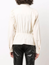 ruched-detail shirt off white cotton classic collar long sleeves front zip fastening ruched detailing Made in Italy Composition Cotton 100% SIZE & FIT Model measurements Height 5 ft 9 in(1.76 m) Bust/Chest 33.07 in(84 cm) Hips 34.64 in(88 cm) Waist 25.59 in(65 cm) FittingInformation This piece fits true to size. We recommend you get your regular size Cut for a slim fit Made with a mid-weight non-stretch fabric Washing instructions Hand Wash