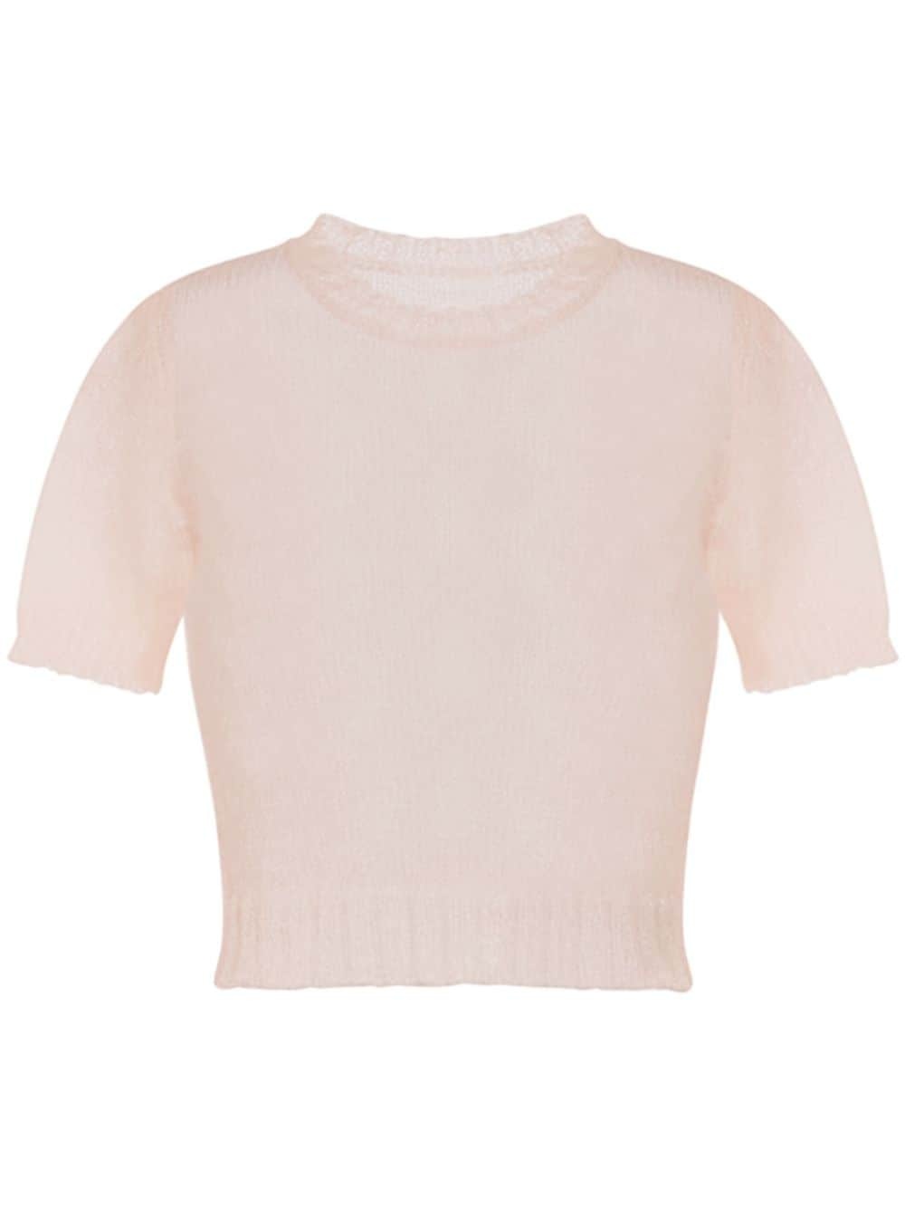 sheer knit top Highlights - Beige - Semi-sheer construction - Ribbed detailing - Crew neck - Short sleeves - Cropped Made in Italy Composition Polyamide 100%
