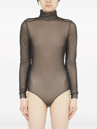 sheer long-sleeve jersey bodysuit Highlights - Black - Jersey texture - Sheer - Signature four-stitch logo - Roll neck - Press-stud fastening - Long sleeves - Just a reminder that this piece must be tried on over your own garments. Made in Italy Composition Viscose 100%