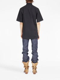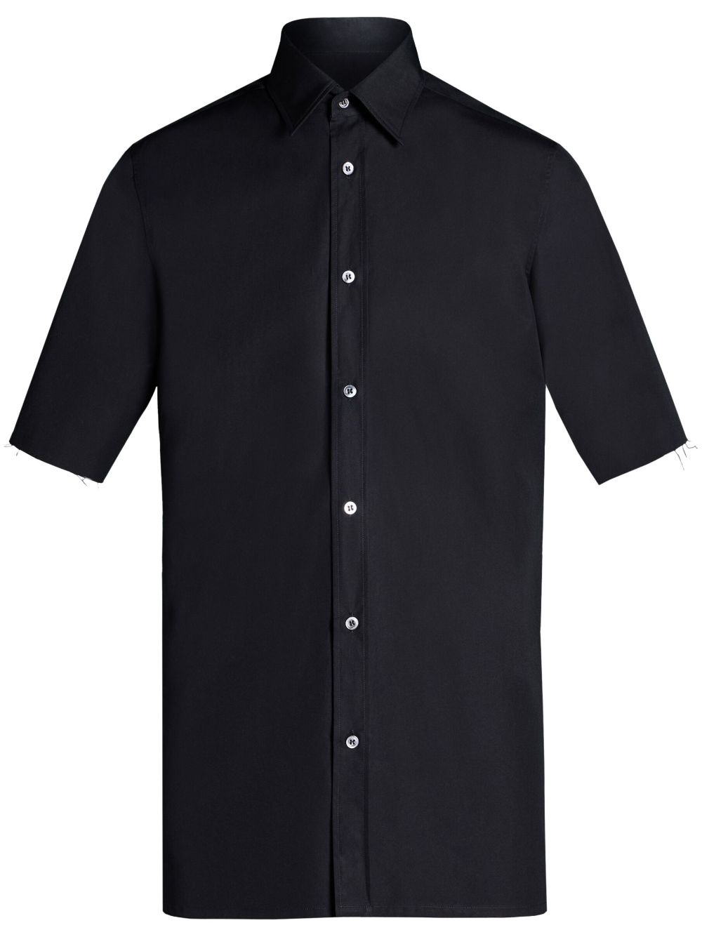 four-stitch short-sleeve shirt Highlights - Jet black - Cotton - Poplin texture - Signature four-stitch logo - Straight-point collar - Front button fastening - Short sleeves - Straight hem Made in Italy Composition Cotton 100% SIZE & FIT FittingInformation Designed for a relaxed fit, this piece allows for comfort and movement when worn Made from a midweight non-stretch fabric This piece fits true to size – take your usual size Washing instructions Read Manufacturer Guidelines