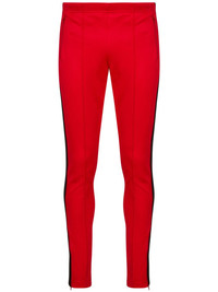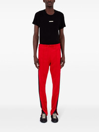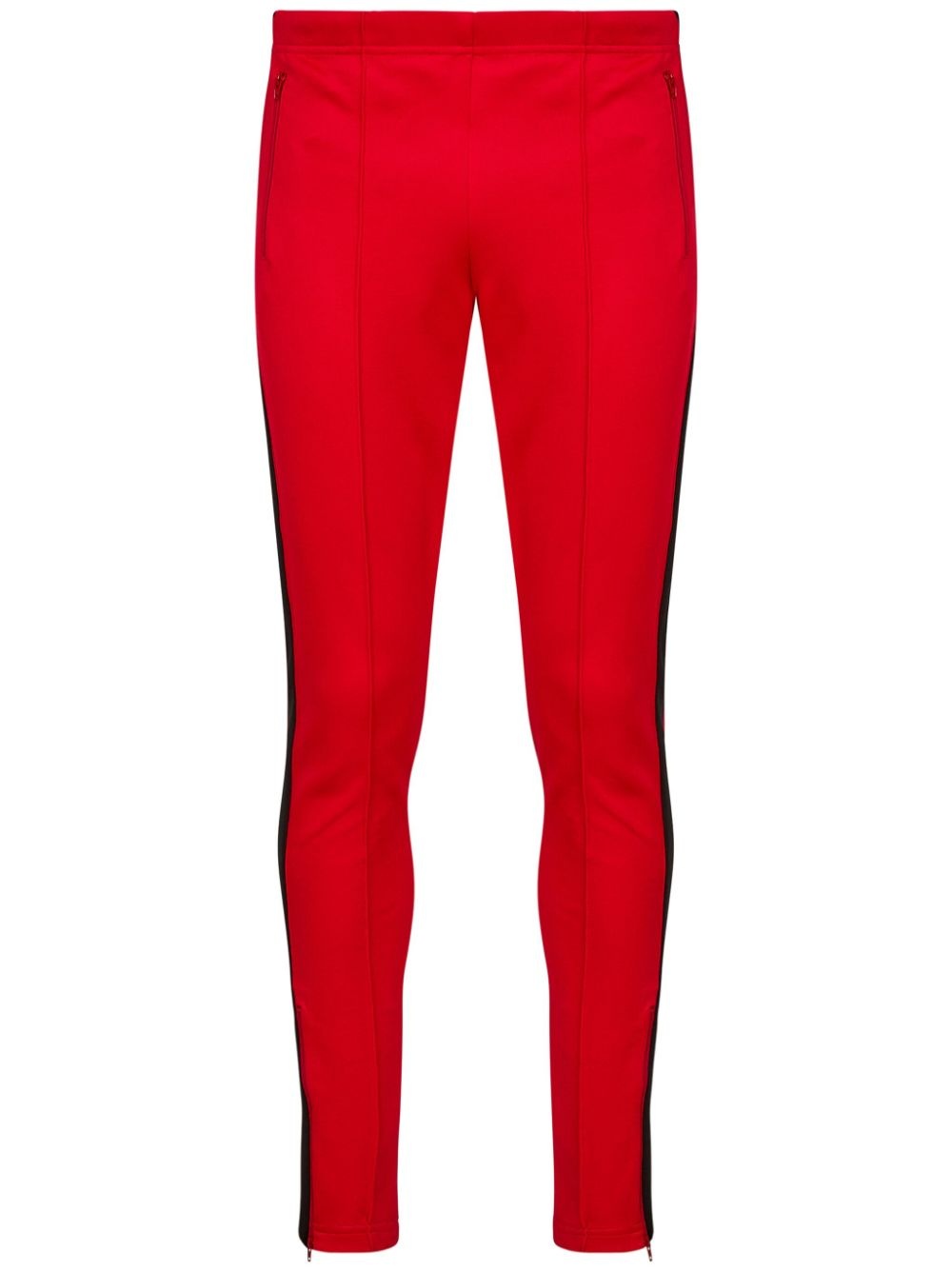 side-stripe track pants Highlights - Bright red - Jersey texture - Side stripe detailing - Elasticated drawstring waistband - Two side zip-fastening pockets - Slim cut - Ankle zips Made in Italy Composition Polyester 55%, Cotton 45%