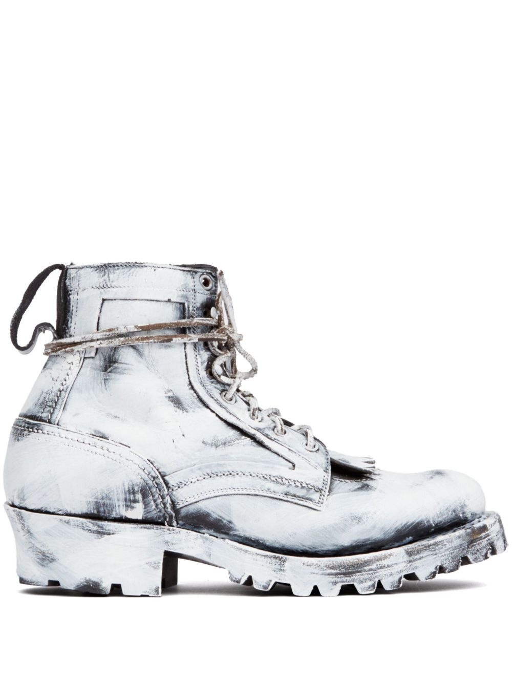Sierra boots Highlights - White - Calf leather - Distressed effect - Fringe detail at the toe - Drawstring fastening - Pull-tab at the heel - Round toe - Rubber lug sole - Block heel Made in Italy Composition Lining: Calf Leather 100% Sole: Rubber 100% Outer: Calf Leather 100%