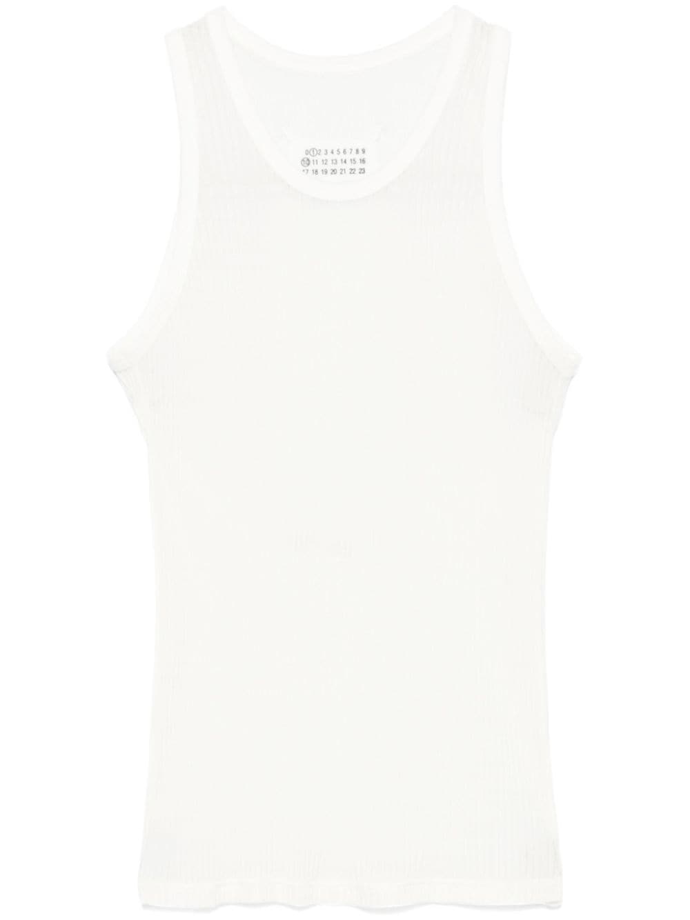 silk tank top Highlights - White - Silk - Fine ribbed - Round neck - Sleeveless - Signature four-stitch logo - Straight hem Made in Italy Composition Silk 100% SIZE & FIT Model measurements Height 5 ft 11 in(1.8 m) Bust/Chest 33.07 in(84 cm) Hips 37.4 in(95 cm) Waist 25.19 in(64 cm) FittingInformation Designed for a slim fit that sits just away from the body offering a close yet comfortable fit Made from a lightweight non-stretch fabric, this piece offers minimal elasticity when worn