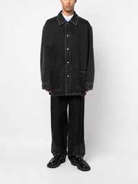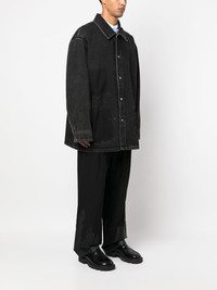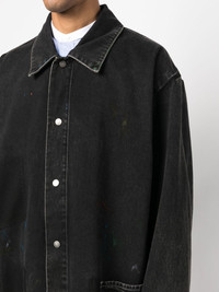 single-breasted denim coat Highlights - Black - Cotton - Front button fastening - Classic collar - Oversize frame - Long sleeves - When buying this unisex item, keep in mind that it is graded in standard men's sizing. Made in Italy Composition Outer: Cotton 100% Lining: Cotton 100% SIZE & FIT Model measurements Height 6 ft 2 in(1.88 m) Bust/Chest 36.61 in(93 cm) Hips 37.79 in(96 cm) Waist 28.74 in(73 cm) FittingInformation This piece fits true to size. We recommend you get your regular size Cut for an oversized fit Made with a mid-weight non-stretch fabric Washing instructions Machine Wash