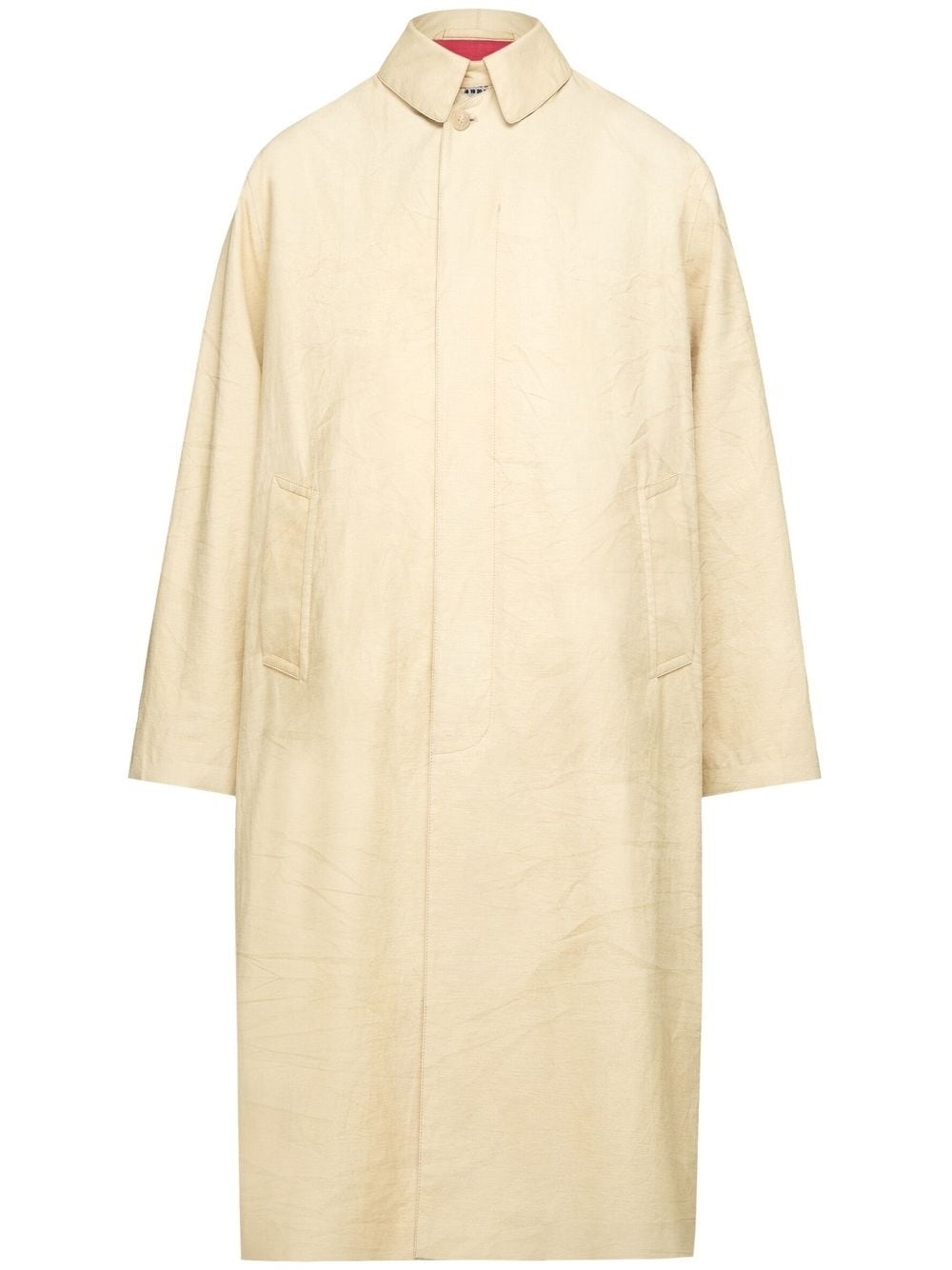 Utility cotton trench coat Highlights - Banana yellow - Cotton blend - Classic collar - Concealed front fastening - Slip pockets to the sides - Long sleeves - Rear slit - Rear curved hem Made in Italy Composition Body: Cotton 84%, Polyamide 16% Sleeve Lining: Viscose 100%