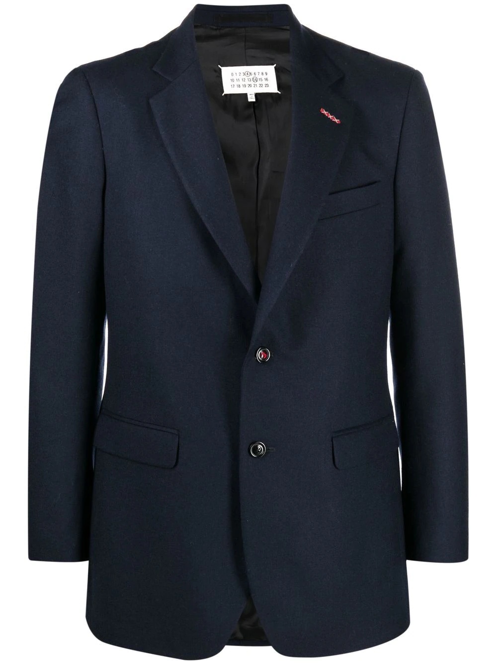 single-breasted twill blazer Highlights - Navy blue - Wool - Notched lapels - Front button fastening - Long sleeves - Central rear vent - Chest welt pocket - When buying this unisex item, keep in mind that it is graded in standard men's sizing. Made in Italy Composition Lining: Viscose 100% Outer: Wool 100% SIZE & FIT Model measurements Height 5 ft 9 in(1.75 m) Bust/Chest 32.67 in(83 cm) Hips 36.22 in(92 cm) Waist 24.8 in(63 cm) FittingInformation This piece fits true to size. We recommend you get your regular size Cut for a slim fit Made with a mid-weight non-stretch fabric Washing instructions Dry Clean Only