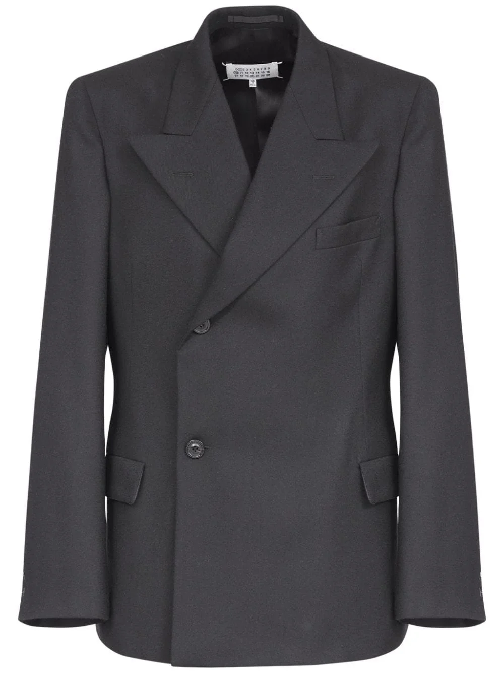 single-breasted wool blazer Highlights - Dark grey - Wool - Twill weave - Wide peak lapels - Off-centre front fastening - Chest welt pocket - Two front flap pockets - Shoulder pads - Long sleeves - Buttoned cuffs - Straight hem Made in Italy Composition Wool 100% Washing instructions Read Manufacturer Guidelines