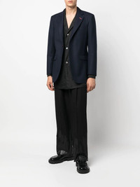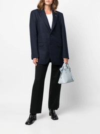 single-breasted twill blazer Highlights - Navy blue - Wool - Notched lapels - Front button fastening - Long sleeves - Central rear vent - Chest welt pocket - When buying this unisex item, keep in mind that it is graded in standard men's sizing. Made in Italy Composition Lining: Viscose 100% Outer: Wool 100% SIZE & FIT Model measurements Height 5 ft 9 in(1.75 m) Bust/Chest 32.67 in(83 cm) Hips 36.22 in(92 cm) Waist 24.8 in(63 cm) FittingInformation This piece fits true to size. We recommend you get your regular size Cut for a slim fit Made with a mid-weight non-stretch fabric Washing instructions Dry Clean Only