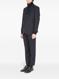 single-breasted wool blazer Highlights - Black - Virgin wool - Twill weave - Classic lapels - Front button fastening - Chest welt pocket - Two front flap pockets - Long sleeves - Buttoned cuffs - American rear vent - Straight hem Made in Italy Composition Virgin Wool 100%