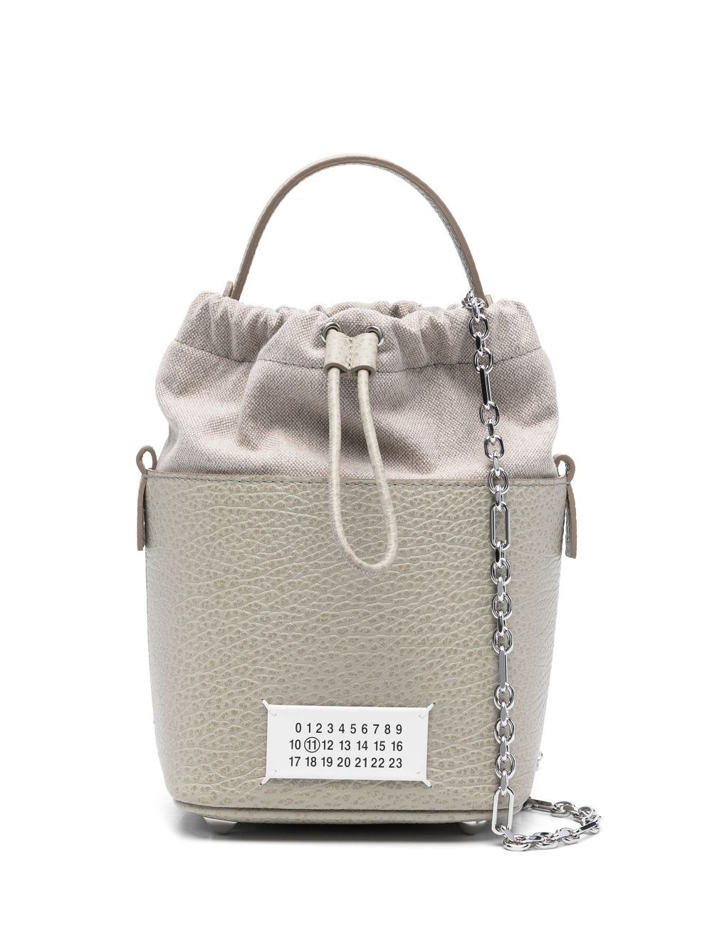 small 5AC bucket bag Highlights - Taupe brown - Top drawstring fastening - Single detachable top handle - Detachable leather and chain-link shoulder strap - This piece comes complete with a protective dust bag. Made in Italy Composition Outer: Calf Leather 100%, Cotton 79%, Metal 60%, Zinc 40%, Polyester 15%, Other Fabrics 6% Lining: Cotton 100% SIZE & FIT Model measurements Height 6 ft 2 in(1.87 m) Bust/Chest 37.79 in(96 cm) Hips 37.79 in(96 cm) Waist 30.31 in(77 cm) Measurement DEPTH 4.33 in(11 cm) HEIGHT 6.29 in(16 cm) WIDTH 5.11 in(13 cm)