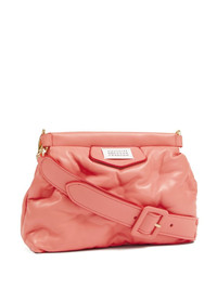 small Glam Slam shoulder bag Debuted in 2018, Maison Margiela's Glam Slam bag is a brand icon known for its soft, pillowy silhouette, resulting from a quilted design that mimics matelasse. This iteration is crafted from Italian nappa leather in a coral-pink colourway and boasts the iconic numbers motif at the front. The detachable strap allows it be worn on the shoulders or as a clutch. Highlights - Coral pink - Nappa leather - Smooth grain - Quilted - Logo patch to the front - Signature numbers motif - Magnetic fastening - Internal logo stamp - Signature four-stitch logo - Internal zip-fastening pocket - Full lining Made in Italy Composition Lining: Nylon 100% Outer: Nappa Leather 100%