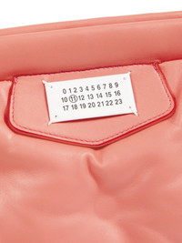 small Glam Slam shoulder bag Debuted in 2018, Maison Margiela's Glam Slam bag is a brand icon known for its soft, pillowy silhouette, resulting from a quilted design that mimics matelasse. This iteration is crafted from Italian nappa leather in a coral-pink colourway and boasts the iconic numbers motif at the front. The detachable strap allows it be worn on the shoulders or as a clutch. Highlights - Coral pink - Nappa leather - Smooth grain - Quilted - Logo patch to the front - Signature numbers motif - Magnetic fastening - Internal logo stamp - Signature four-stitch logo - Internal zip-fastening pocket - Full lining Made in Italy Composition Lining: Nylon 100% Outer: Nappa Leather 100%