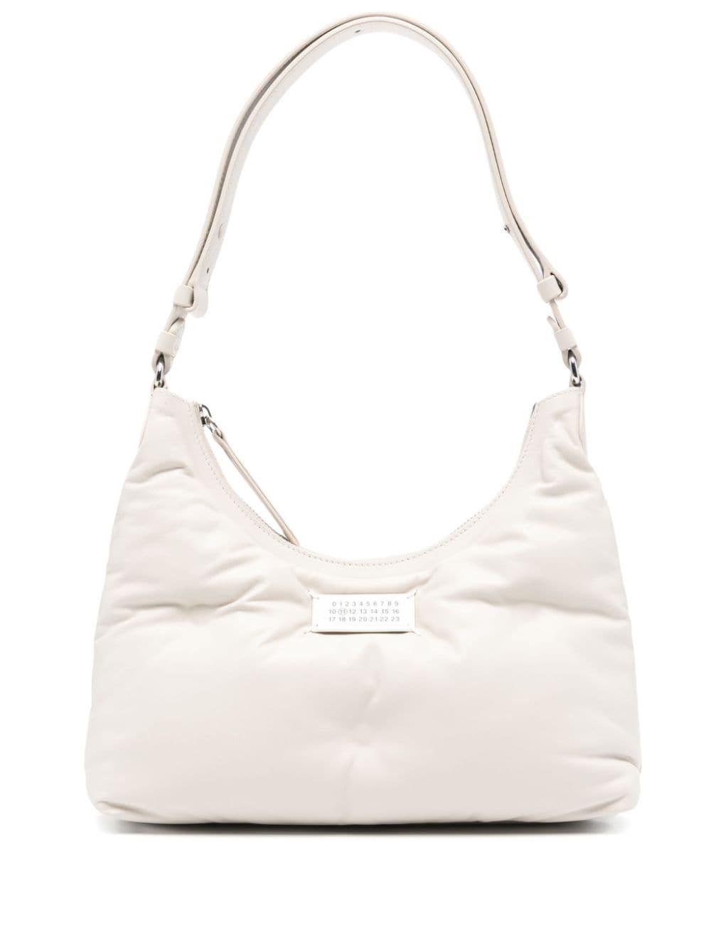 small Glam Slam shoulder bag Highlights - Off-white - Sheepskin - Smooth grain - Padded design - Signature numbers motif - Adjustable shoulder strap - Main compartment - Internal zip-fastening pocket - Debossed internal logo - Contrast lining - Silver-tone hardware - Top zip fastening - This piece comes complete with a protective dust bag. Made in Italy Composition Outer: Calf Leather 100%, Sheepskin 100%, Zinc 100%, Brass 100% Lining: Polyester 100%, Sheepskin 100% SIZE & FIT Model measurements Height 5 ft 10 in(1.78 m) Bust/Chest 31.49 in(80 cm) Hips 37 in(94 cm) Waist 23.62 in(60 cm) Measurement DEPTH 2.36 in(6 cm) HANDLE 7.87 in(20 cm) HEIGHT 7.08 in(18 cm) WIDTH 10.62 in(27 cm)