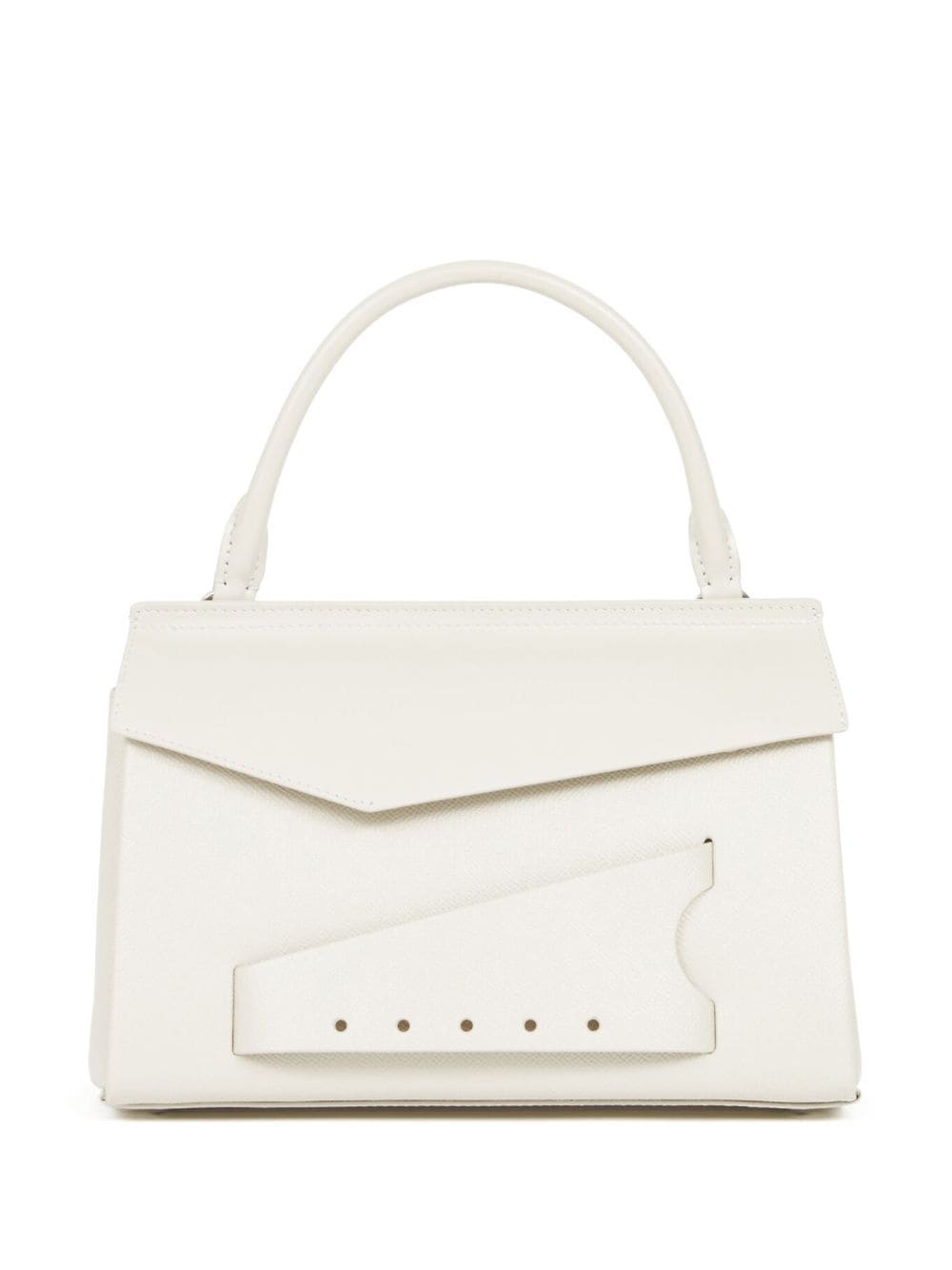 Snatched leather tote bag This leather tote bag by Maison Margiela is punctuated with the iconic four-stitch logo to its back. Initially created as a way of stitching a label on to garments in a way that could be easily removed, it has become an instantly recognisable brand emblem. Highlights - White - Leather - Grained texture - Signature four-stitch logo - Logo patch to the front - Top zip fastening - Single flat top handle - Main compartment Made in Italy Composition Outer: Calf Leather 100%, Brass 100%, Zinc 94%, Aluminium 4%, Copper 2% Lining: Calf Leather 100%, Polyester 100% SIZE & FIT Measurement DEPTH 4.33 in(11 cm) HANDLE 4.33 in(11 cm) HEIGHT 6.69 in(17 cm) STRAP 21.65 in(55 cm) WIDTH 8.07 in(20.5 cm)