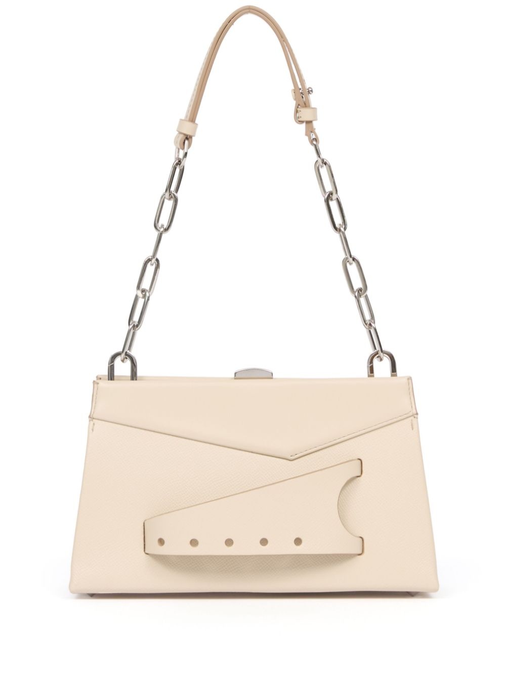 small Snatched shoulder bag Highlights - Beige - Calf leather - Smooth grain - Magnetic fastening - Leather and chain-link shoulder strap - Perforated detailing - Signature four-stitch logo - Main compartment - Internal slip pocket - This piece comes complete with a protective dust bag. Made in Italy Composition Outer: Calf Leather 100%