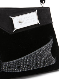 small Snatched suede tote bag Highlights - Black - Goatskin - Suede - Geometric panelled design - Crystal embellishment - Silver-tone logo plaque - Signature numbers motif - Signature four-stitch logo - Two rolled top handles - Front handle - Clasp fastening - Main compartment - Internal logo stamp Made in Italy Composition Outer: Crystal 100%, Viscose 65%, Cupro 35% Lining: Goat Skin 100% SIZE & FIT Measurement DEPTH 1.96 in(5 cm) HEIGHT 5.31 in(13.5 cm) STRAP 22.44 in(57 cm) WIDTH 7.28 in(18.5 cm)