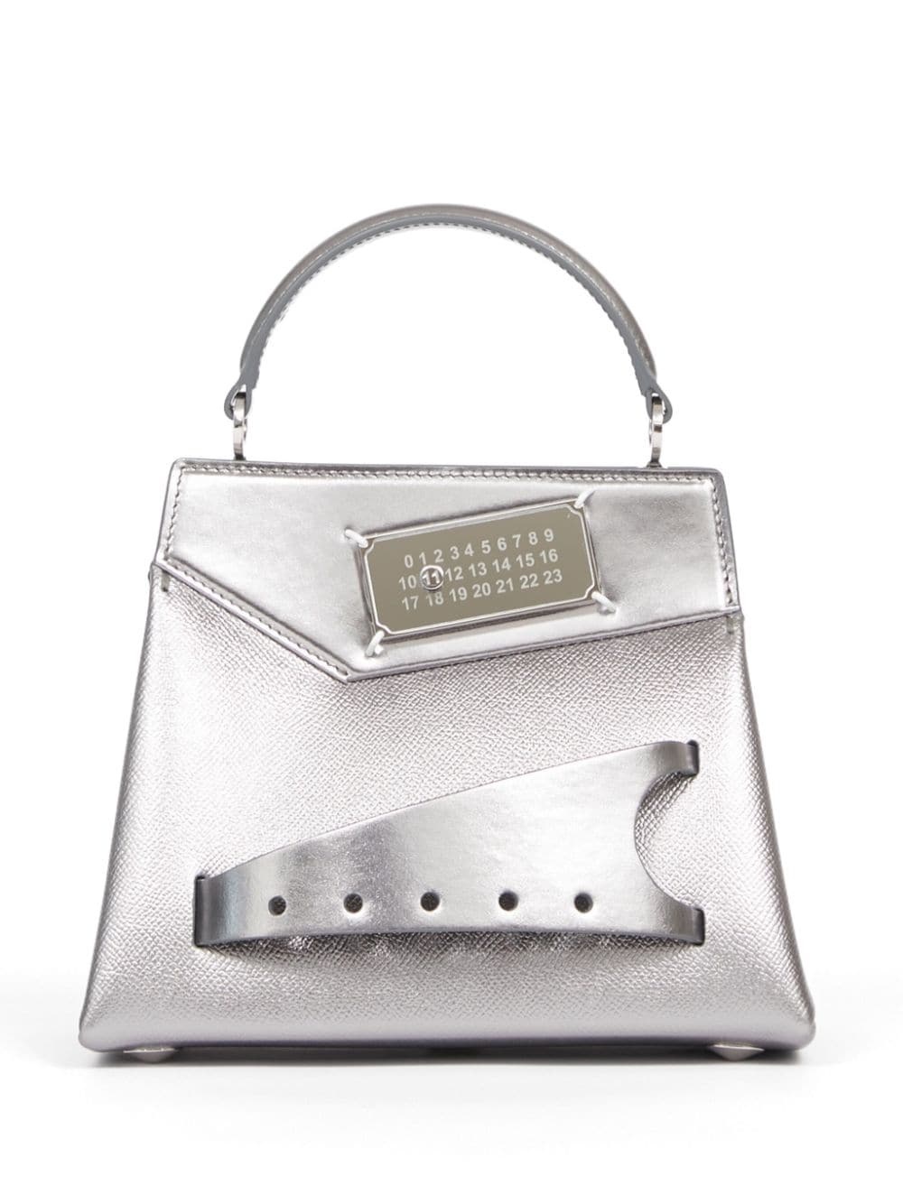 Snatched leather tote bag Highlights - Silver-tone - Calf leather - Textured finish - Silver-tone logo plaque - Metallic effect - Signature numbers motif - Signature four-stitch logo - Front handle - Single flat top handle - Twist-lock fastening - Main compartment Made in Italy Composition Outer: Calf Leather 100%