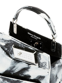 Snatched leather tote bag Highlights - Black/white - Calf leather - Textured finish - Abstract pattern print - Signature numbers motif - Silver-tone logo plaque - Front handle - Twist-lock fastening - Single flat top handle - Main compartment Made in Italy Composition Outer: Calf Leather 100%