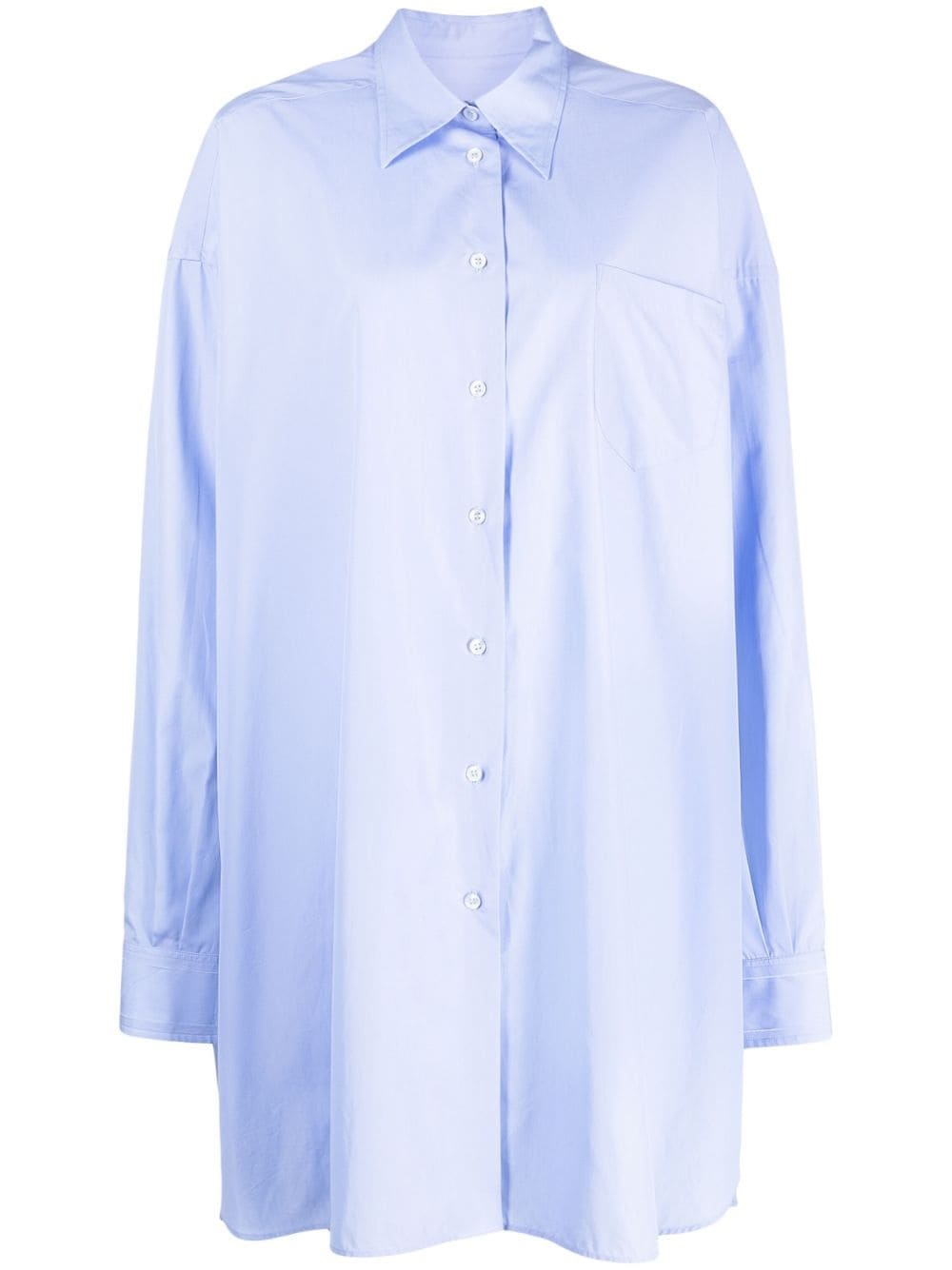 longline poplin shirt Highlights - Light blue - Cotton - Spread collar - Front button fastening - Long sleeves - Buttoned cuffs - Long length - Straight hem Made in Italy Composition Cotton 100% SIZE & FIT Model measurements Height 5 ft 10 in(1.77 m) Bust/Chest 31.1 in(79 cm) Hips 34.64 in(88 cm) Waist 24.8 in(63 cm) Measurement SLEEVE LENGTH 18.5 in(47 cm) HIPS 66.92 in(170 cm) LENGTH 40.55 in(103 cm) WAIST 66.92 in(170 cm) BUST 66.92 in(170 cm) FittingInformation Designed for an oversized fit, offering additional room throughout Made from a midweight non-stretch fabric This piece fits true to size – take your usual size Washing instructions Machine Wash