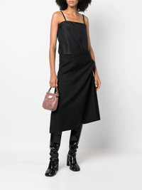 Reworked wool midi dress Highlights - Black - Wool-mohair blend - Spaghetti straps - Square neck - Fitted waistline - Box-pleat detail - Side button and zip fastening Made in Italy Composition Outer: Silk 100%, Wool 80%, Mohair 20% Lining: Viscose 100% SIZE & FIT Model measurements Height 5 ft 10 in(1.78 m) Bust/Chest 33.07 in(84 cm) Hips 36.61 in(93 cm) Waist 24.8 in(63 cm) Measurement HIPS 37.79 in(96 cm) WAIST 33.85 in(86 cm) FittingInformation This piece fits true to size. We recommend you get your regular size Designed for a close fit at the bust, waist and hips Made with a mid-weight non-stretch fabric