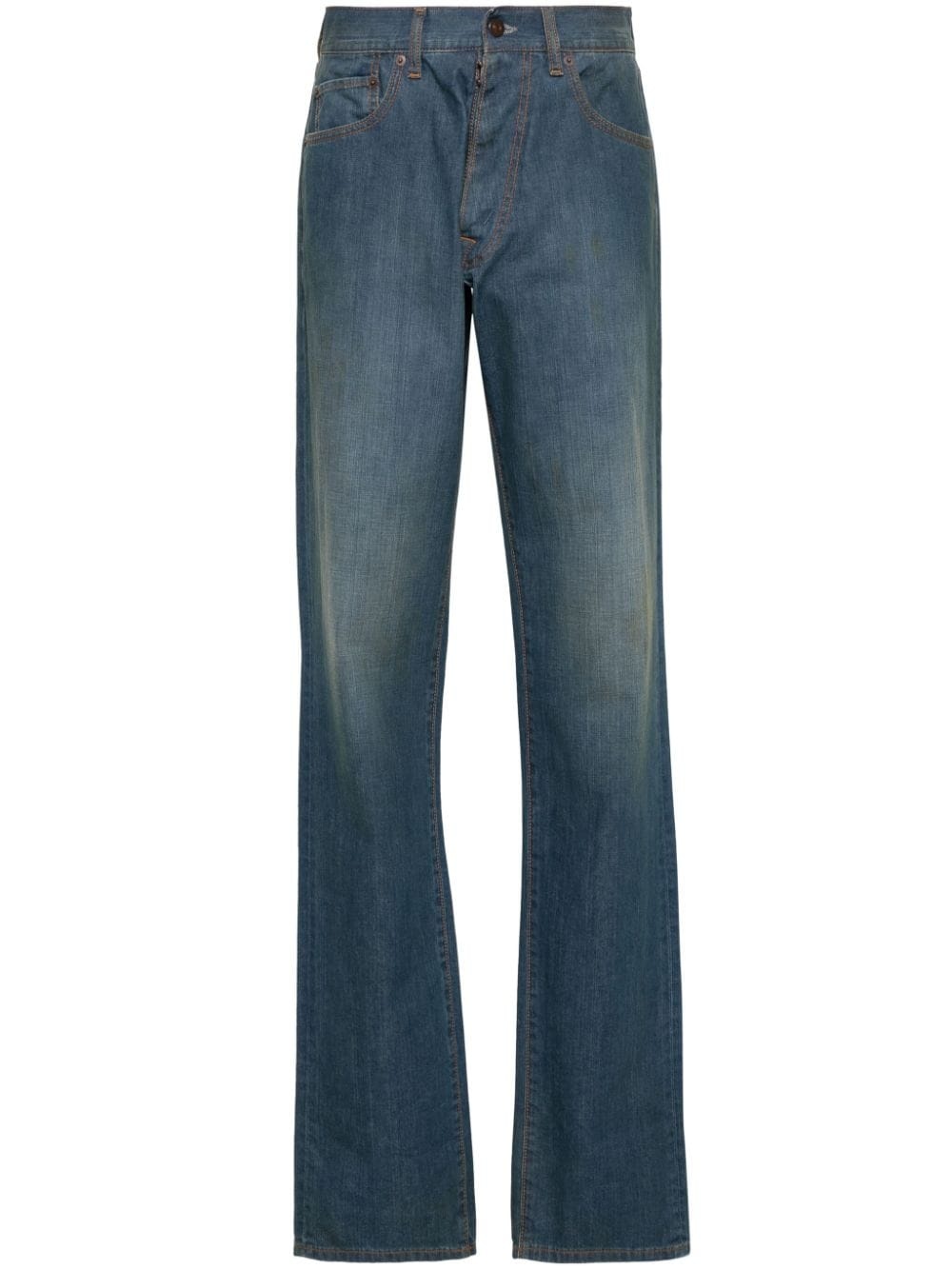 straight-leg cotton jeans Highlights - Blue - Cotton - Denim - Faded effect - Contrast stitching - Belt loops - Classic five pockets - Rear signature four-stitch logo - Concealed zip fastening and front button fastening Made in Italy Composition Cotton 100% SIZE & FIT Model measurements Height 5 ft 10 in(1.77 m) Bust/Chest 32.28 in(82 cm) Hips 35.03 in(89 cm) Waist 25.19 in(64 cm) FittingInformation Designed for a straight-leg fit, these jeans allow for a close fit at the waist and an unrestricted and comfortable fit over the leg Sturdy and hard-wearing, this denim piece offers no stretch This piece fits true to size – take your usual size Washing instructions Machine Wash
