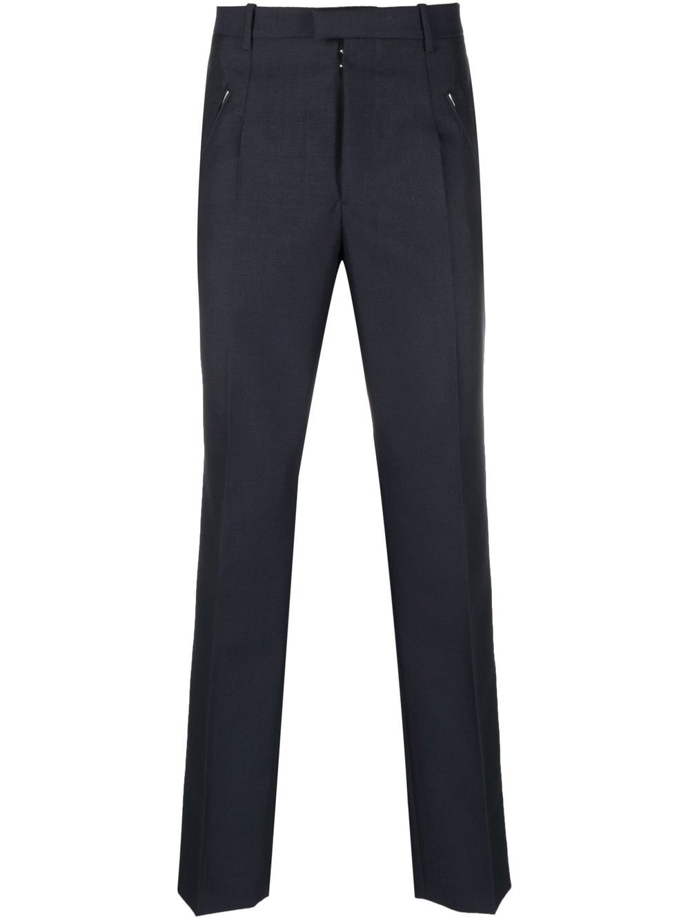 straight-leg tailored trousers navy blue wool-mohair blend signature four-stitch logo belt loops two side zip-fastening pockets hook and zip fly fastening tailored cut straight leg Made in Italy Composition Lining: Cotton 100%, Viscose 100% Outer: Wool 70%, Mohair 30% SIZE & FIT Model measurements Height 6 ft 2 in(1.88 m) Bust/Chest 36.61 in(93 cm) Hips 37.79 in(96 cm) Waist 28.74 in(73 cm) FittingInformation This piece fits true to size. We recommend you get your regular size Cut for a slim fit Made with a mid-weight non-stretch fabric Washing instructions Dry Clean Only