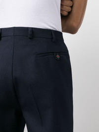 tailored wool trousers Highlights - Straight-leg tailored trousers from maison margiela featuring navy blue, cotton, wool, signature four-stitch logo, mid-rise, concealed front fastening, belt loops and straight leg. Made in Italy Composition Lining: Cotton 100%, Viscose 100% Outer: Wool 100% SIZE & FIT Model measurements Height 6 ft 2 in(1.87 m) Bust/Chest 38.18 in(97 cm) Hips 36.61 in(93 cm) Waist 29.13 in(74 cm) FittingInformation This piece fits true to size. We recommend you get your regular size Cut for a slim fit Made with a mid-weight non-stretch fabric Washing instructions Dry Clean Only