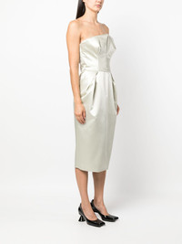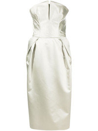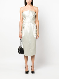 strapless silk midi dress Highlights - Light olive green - Silk - Satin finish - Square neck - Strapless - Sleeveless - Gathered detailing - Mid-calf length Made in Italy Composition Outer: Cotton 100%, Acetate 61%, Polyamide 39% Lining: Silk 100%, Polyester 100%, Cotton 100%, Polyamide 81%, Spandex/Elastane 19% SIZE & FIT Model measurements Height 5 ft 11 in(1.8 m) Bust/Chest 33.07 in(84 cm) Hips 37.4 in(95 cm) Waist 25.19 in(64 cm) FittingInformation Designed for a slim fit that sits just away from the body offering a close yet comfortable fit The internal bodice offers support and shape Made from a midweight fabric This piece fits true to size – take your usual size