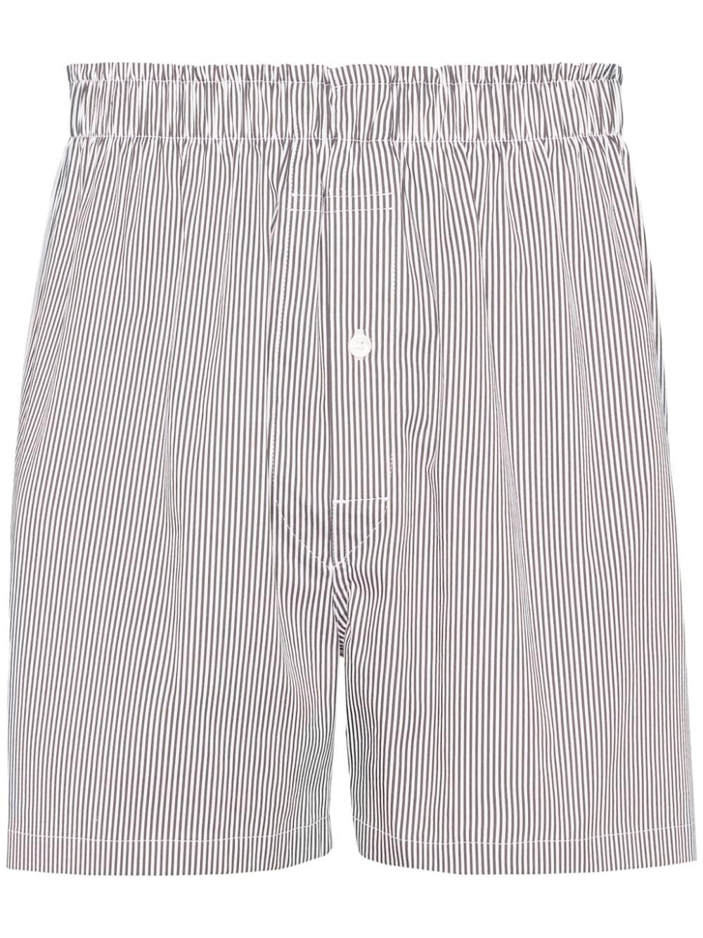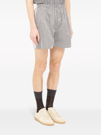 stripe-print elastic-waist shorts Synonymous with Maison Margiela’s contemporary design style, the classic four-stitch logo has become a recognisable brand symbol. This detail is seen in the rear of these shorts, adding an unmistakable feel to its striped design. Highlights - Black/white - Cotton blend - Poplin texture - Panelled design - Vertical stripe pattern - Signature four-stitch logo to the rear - Elasticated waistband - Above-knee length - Front button fastening Made in Italy Composition Cotton 78%, Nylon 16%, Elastane 6%
