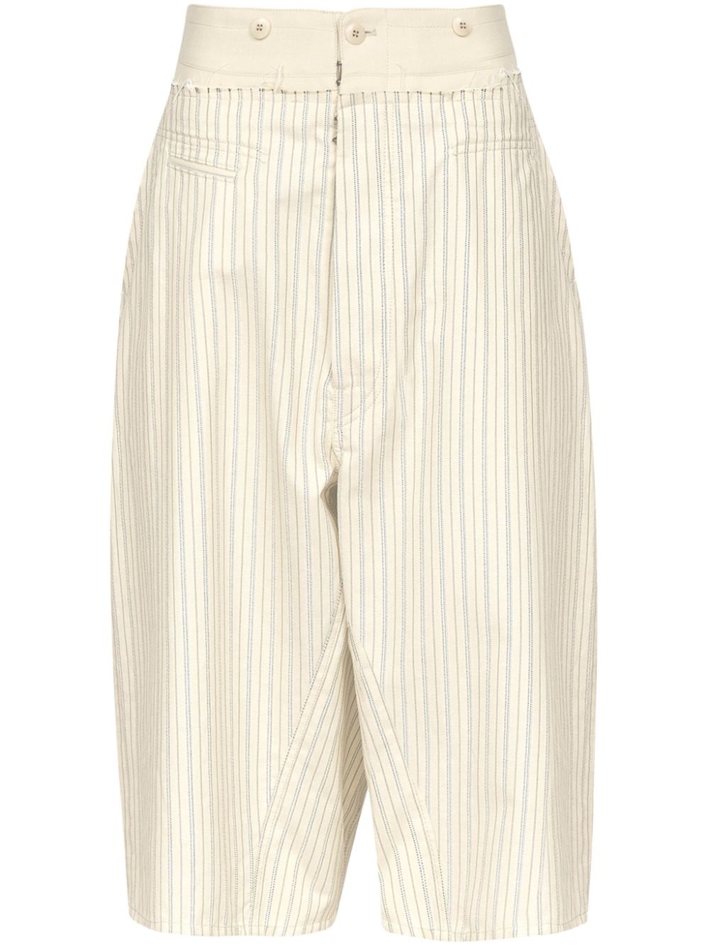 striped shorts Highlights - Beige - Cotton blend - Button fastening - High-waisted - Pinstripe pattern - Two rear welt pockets - Below-knee length Made in Italy Composition Cotton 80%, Polyester 20%
