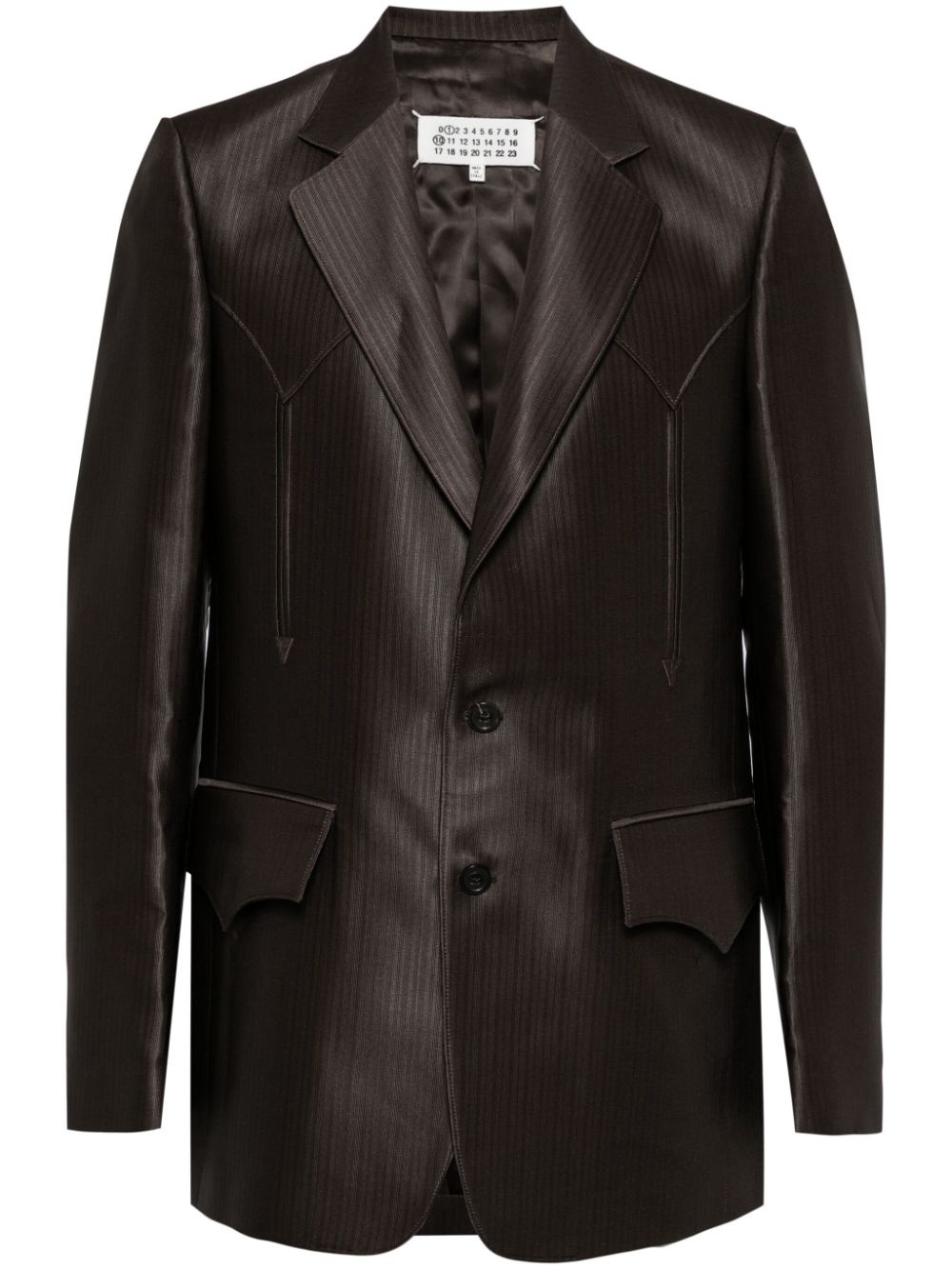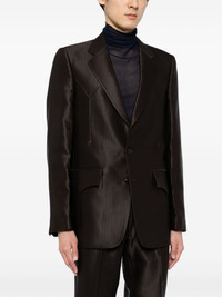 striped single-breasted blazer Highlights - Chocolate brown - Wool-silk blend - Vertical stripe pattern - Signature four-stitch logo - Notched lapels - Front button fastening - Long sleeves - Buttoned cuffs - Central rear vent Made in Italy Composition Outer: Wool 75%, Silk 25% Lining: Viscose 100% SIZE & FIT Model measurements Height 6 ft 2 in(1.87 m) Bust/Chest 34.25 in(87 cm) Hips 36.22 in(92 cm) Waist 29.52 in(75 cm) FittingInformation Designed for a regular fit, allowing for a comfortably loose fit throughout the body Made from a midweight non-stretch fabric This piece fits close in all sizes – take your usual size