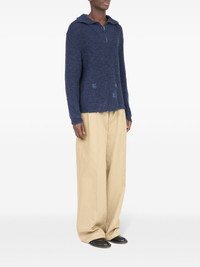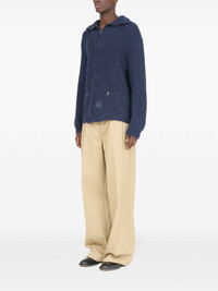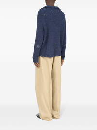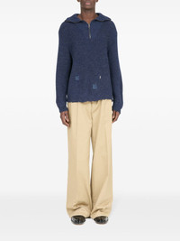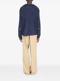 Summer Shetland sweater Highlights - Navy blue - Linen-wool blend - Ribbed knit - Distressed effect - Half front zip fastening - Spread collar - Drop shoulder - Long sleeves - Ribbed trim - Straight hem Made in Italy Composition Linen/Flax 67%, Wool 33%