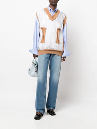 Spliced knit-detail shirt Highlights - Light blue/camel brown - Virgin wool/cotton - Layered design - Classic collar - Long sleeves - Buttoned cuffs - When buying this unisex item, keep in mind that it is graded in standard men's sizing. Made in Italy Composition Wool 100% SIZE & FIT Model measurements Height 5 ft 10 in(1.77 m) Bust/Chest 32.28 in(82 cm) Hips 35.03 in(89 cm) Waist 25.19 in(64 cm) FittingInformation This piece fits true to size. We recommend you get your regular size Cut for a loose fit Made with a mid-weight fabric Washing instructions Hand Wash