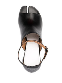 Tabi 80mm leather sandals The conventional sandal has had a Maison Margiela twist. The French luxury house's enigmatic approach is evident in this leather pair, designed with a single buckle fastening ankle strap and a Tabi toe detail. They're defiantly out of this world. Highlights - Black - Leather - Tabi toe - Open toe - Branded insole - Tonal stitching - Buckle-fastening ankle strap - High block heel - Signature white-stitch logo Made in Italy Composition Outer: Leather 100% Lining: Leather 100% Sole: Leather 100% SIZE & FIT Measurement CIRCUMFERENCE 11.81 in(30 cm) HEEL 3.54 in(9 cm) HEIGHT 3.54 in(9 cm)